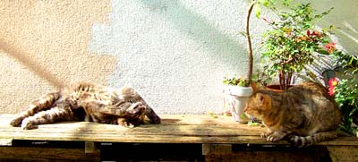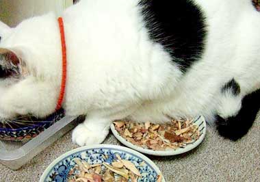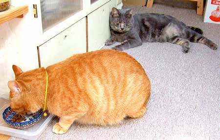 さすけは他の猫の食べ物とか場所が好き。必ず乱入占拠。 さすけはどんどん段々顔が丸いぞ。かわいい。 元菅又はなにやらどたばた。外仕事の準備とか調べ物とか、うちの補修もしたらしい。 田崎はすぐ其処のご近所医院に漢方薬を処方して貰いに。昨夜風邪対策に葛根湯を飲んだら、今朝よく効いているじゃないの。頭痛もないし。ってことで、よく考えたら最近の具合悪さも・・中年の動悸息切れ・・漢方だ〜と、急遽行ったわけだ。 けっこうご年輩の女医さんは話好きでとても面白い。『私はこれが一番効いたけど、そして他にこれとこれがあるから、今回はこの23番にしてみようかしら、効果はどんなもんだか教えてね、だめなら次はこれ、その次はこれこれ・・・』ってご自分も色々試してみて、患者にも実験。いや漢方ってこんなもんか。しかしだ、昼に飲んだのがとっても効いているみたいで・・今日は動悸息切れがまったくしないだ。他も試してみたいのに。などなど。午後半分からは風邪療養休眠していたぜ。だから・・龍う太は現在強力元気で《ちゅうちゅう持ってこい》強制中。田崎が寝ているとみんなも寝る・・。 昼・色々残り物セット、夜・海老と野菜の天ぷら軍団。 【菅又の一言】・・・《てつは色ボケ。》 毎朝元菅又の腕にさかっているらしい。