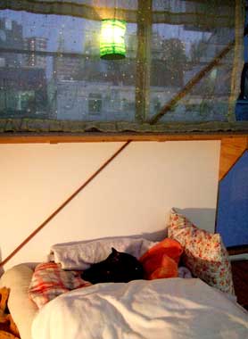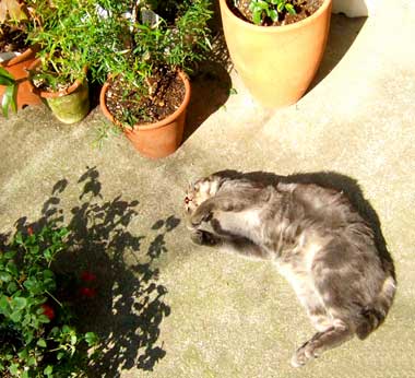 昼少し前から昼少し過ぎまでの短い猫日光浴Time。この風景を見ると・・どこの田舎だ・・新宿高田馬場とは思えんぞ。 アメリカよりの客人は帰国。いつもの夜の便で一路巨猫の待つ西海岸に。 空港に行くと必ず今度こそアメリカに遊びに行こうと決心するのに、帰りに千葉ニュ〜タウンのジョイフルなぞに寄るとすぐ忘却の彼方。 今回は物欲に負けて行かんと欲す。 まず中庭に全部網を掛けて猫対策だ。巨大猫檻と化す我が家だ。 しかしこの暑さは何だ。今は夏か。 明日から元菅又は外仕事ざっくざっく。 田崎は作り物仕事三昧。 昼・高島屋買い食い(お土産におせんべ買いに行ったのだ)、夜・ドネルケヴァヴ・・。秋葉原近くで田崎が元菅又に云ったから。彼はケヴァヴと聞くと喰わずにはいられない身体なのだ。 【菅又の一言】・・・《閉店前のケヴァヴの肉の量は想像を絶す。》 20時半でほぼ最後の客・顔見知り=山盛りぎゅぅぎゅぅ詰め。 |