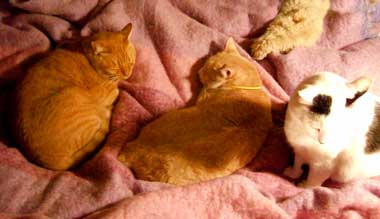 とっても秋気分なてつ。背景はしっこシ〜ツだけど。 笹蒲の小さな箱にきっちりみっちり。 田崎のピンクのム〜トンスリッパとカリカリ喰うこちゃと、色がなんて秋。 日が射していると気持ちの良い秋気分だけど、日が陰ると寒い。猫達もすぐ帰ってきてしまう。 元菅又は先日の続き椅子作り。1回ニス塗り完了。 夕方宅急便出しがてら、DVD返しがてら、猫あんか買いとすぐ坂の上TUTAYAにDVD借りとか。外をさくさく歩いていると暖かいのだが、うちは寒い。 と思っていたら、まだ絨毯がちょっとしか敷いていないからだ。 明日は絨毯敷きまくるぞ、でも元菅又は小平にナレェタだ・・。 眠い眠い眠い。人も猫もム〜トンと羽毛と電気あんかとか電気敷布とか・・・軟弱〜。でもぬくぬく嬉しい。(猫も羽毛布団を敷いているのだ。古いのを猫サイズに切ってフリ〜スでカヴァ〜。) 昼・味噌ラ〜メン作って、夜・炊き込み飯と一口餃子と大根煮たのとベ〜コンス〜プ。 【菅又の一言】・・・《ニスを一塗りして2階に帰ってくると素直にむせかえ溶剤負け田崎。》 で、クラリチンを飲むとわりとすぐに復活、でも眠いってば。 |