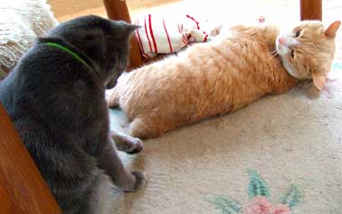珍しい接近その2.てつとこちゃ。けっきょく暖かいところに弱い赤猫。 いや、こちゃはてつをいじめるより、自分の身の危険を考える方が忙しい。さすけはしつこく、龍う太が面白がって追いかけるのも難儀中。 田崎には黒猫とさすけ、元菅又には赤猫。というか・・田崎場所にいつも龍う太がいるので最近はこちゃが来られない。てつは毎晩元菅又と一緒。こちゃは龍う太と猿よりも・・てつがましって事だ。やっちはどちらでも可。 午前中、元菅又はTOTOに介護用トイレ調査、手すりと便座が跳ね上がる。足や背筋力が落ちたお年寄りのため。取り付けるのは確実、どのタイプが良いのか調査研究。 田崎はオカダヤにちょっと。 午後は名古屋より客人帰宅、お茶して各の仕事に。 出来た。 昼・急いでいたのでいい加減飯(スガキヤ麺と冷凍炒飯)、夜・飯とプルコギと隼人瓜と水菜とたかべ・・田崎/カルビクッパも。 【菅又の一言】・・・《鼠を投げると龍う太が持ってくるが、てつを投げると自分で戻ってくる。》 元菅又はてつをBEDの上にぶ〜〜nと放り投げる、てつはわ〜と喚きながら足元に戻ってきて・・また放って貰う・・って遊び。てつがもの凄く小さい頃からの遊び・・・。田崎はてつが重くてできない。 |