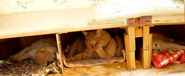 改造ソファの下はそこそこ成功。てつ・こちゃ・やっちが並んでいる。ソファカヴァをめくるとおかしい。だいたいてつとこちゃが隣合わせもおかしい。 時々ぶんたろ〜とかさすけが入っている。中はすごくもあもあ暑い。 元菅又はお年寄りの玄関用折り畳み椅子作り。午後遅くに井荻に一仕事とその隣の解体家屋から透明硝子貰い。田崎は乗せて貰って荻窪に入院中の友人お見舞い。もうすぐ帰宅するけど、るんるんお見舞い。阿呆な受け狙いの小物を持参、楽しい。でも電車に乗って一人でぽこぽこ行きたい。帰りに荻窪でだらだら買い物したい。本屋回りしたい。・・・・。 そんな1日。疲れた眠い眠い眠い眠い。 あちこち暖房が強くて疲れたのだ。 昼・遅く井荻に向かう車中でコンビニ買い食い(お握り)、夜・雑穀飯と鰺干物と大根ことこととベ〜コンキャベツス〜プ。 【菅又の一言】・・・《またもや解体現場で硝子貰ってきた。》 ![]() さすけはひたすら他の猫達を叩く。 机の上から下を通る猫達、机の下から上にいる猫達。 隣に座っている猫とか・・。 特に何も嫌がらないてつにしつこい。 この画像は、まず頭の方に座って叩きまくり、背中に回って尻尾を叩いているところ。 10分くらい遊んでいた。 暇なのか遊んで欲しいのか根性が悪いのか・・・。 (食卓の上下で叩きっこしているてつとさすけ、叩く瞬間に手を入れてみると、どちらも実はすごい力。) |