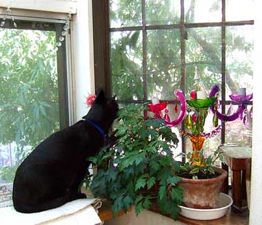 ![]() 太長い黒い生き物は、あちこちで不審。 すぐ立ち上がって何かしている。 軽く爪研ぎとか・・これが又気持ち悪い・・まったく爪研ぎになっていないのだ。 かさかさかさと軽い音、全然傷1つ付かない。 しょっちゅう壁や棚板でやっている。 とか、こうやって台所棚にしがみつくとか匂いをかぐとか。 必ず絶対に・・尻尾はゆらゆらへらへら。 |
