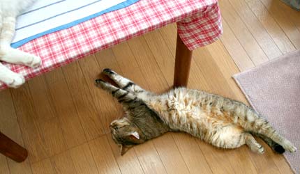 ![]() ねじれ・ねじるぞ・ねじれば・・・・ ねじってろ。 だい猫は手が短い気がするのだが。 |