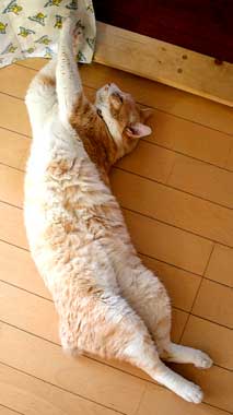 ![]() トイレ脇高いタンスの上にこちゃ・・・。 この腹は・・・この通り・・中身がみっちり。 田崎が起きたときから、夕方出かけるまでここで寝まくっていた。 一度も下りていない。 |