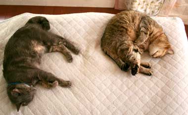![]() 朝起きたらBEDは混んでいた。 |