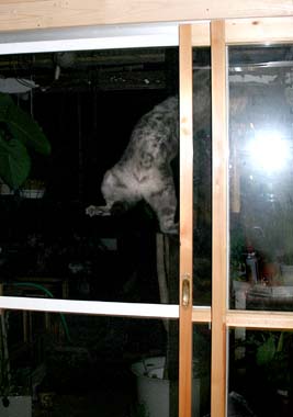 ![]() 案の定。 実はこの辺はとても涼しい。 でもここに住まれると、結局は入れない猫が・・ 今まで通り人階段扉の前で入れろと騒ぐ。 ・・・・・と、 いちいち・・下に見える玄関扉タタキに置いてある1階猫便所に行く。 田崎は背中がめちゃめちゃ涼しく嬉しい。 |