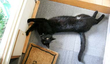 朝起きたらBED足元、だい猫の脇をやすで。・・・・。 教えたら、飛び退った、嫌いらしい。 家中やすでだらけ・・・何故? 誰も見向きもしないということは、やはり身体についてくる???? 昨夜は3時半就寝8時半起床田崎。9時半に菅又を起こし、10時から11時半までヨガ教室。必要なときは目覚まし時計無しで必ず起きる田崎である。 ジムのヨガに比べると、とても穏やかで楽しい。この1年の怠惰とこの数年の体重増加で、身体は堅く、腹肉・・苦しいが・・。足指を開くところから始まるのでまんべんなく身体が暖まり柔らかくなり楽勝じゃん。月2回ずつ通うのだ。菅又も思いの外がちがちではなかった。 (実は前夜ヨガの本を見つつ一通り型を予習田崎であった。) ちょうどヨガ教室が終わって外に出たら雨が。急いで帰る訳だ、ほら窓全開だだだだ。開催は都電早稲田終点付近、近いけれど自転車だ・・。不審な天気じゃ、やっぱり植木に水やりは必要。 田崎mac裏の階段を夏仕様にして貰う、ついでに1階に下りる裏猫出入り階段も作る。相変わらず・・・龍う太はすぐ出入り、てつとぶんたろ〜は頭が固く、表階段から入れろと喚く・・。 昼・鯖ママに教えて貰った美味しいとろろそばを(菅又が作る)、夜・半端な豚肉固まりを使って田崎カレェ。何故ならば亀に喰われた。安い亀肉を買いに行っていない。高い美味い人間用豚肉が・・・。ちょっと残念。 【菅又の一言】・・・《細い猫通路を造ると必ず住む奴が居る。邪魔。》