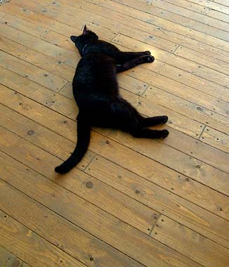 電気やかんを買おう、昼間湯を沸かすのはいや。毎日毎日2ポット分の茶を作るのだ、その湯を沸かすのすらいやぁ。毎日飲む漢方のおかげか、全然暑さ負けはせず、がんがん仕事。・・・・本当かなぁ、実はすごっく負けているのかも。精神は気絶。 昼・・・菅又は仕事先で何やら、夜・台所も居間もまだ35度なので・・・マラバ〜ルテイクアウト。 【菅又の一言】・・・《体中何でも張り付くぞ、べたべた。》 猫たちも・・こちらの手が汗だくなので・・ちょっとでも触ると毛が。 |