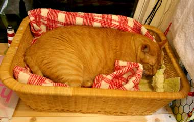 何故かこの場所の評判がいい。本来はてつ場所なのだが、だい猫・やっち・こちゃも寝る。 でも他の誰かが寝ていても・・どうしてもてつは寝たい。だい猫以外は《いない振り・見えない振り》をして・・寝る。 もう・・こちゃが相手でも気にしない。 こちゃの方が1kg近く重いが、見た目はやっぱりてつの勝ち。 夜中から涼しい。とても寝やすく嬉しい。さすけはべたべた。腹に抱いて寝る。今はmac脇の定場所で寝ているし。 でも・・向こうの工事がうるさい臭い、急ぐのか電子学院は日曜祝日に休み無く工事。 ネギが無いと菅又。刺身も喰いたいと菅又。 四谷でPAULのパン、その隣でス〜プも。飲み喰いしつつ・・西国分寺の生活クラヴ店舗まで走る。予想通り道は空いていて1時間足らず。がごがごと買う。(三鷹のJマ〜トは大渋滞していたが。みんな 何を買いにあんなに混んでいるんだ?) 帰宅後涼しい中を長昼寝菅又・・。 DVDを観ながら作り物田崎、昨日とそっくり同じ1日だった。 嘘だった、起床後、こちゃ対策小登り棒を作って貰った。ソファ袖のしっこポイントが・・・いい加減に掛けるので目眩田崎が発注・・・しっこ立ち位置の障害物ってことで。 う〜む、ネタが色々あるのに。強制的と云うことでまた久し振りに《いろはシリ〜ズ》にしようか考慮だ。何のシリ〜ズにしようかのぉ。 馬路村ゆず酢が切れていて難儀中、田崎が調合しているが酸味が少ない。ふn。 昼・PAULのフランスパンのサンドウィッチとス〜プストックのクラムチャウダ〜、夜・鰹の叩きと雑穀飯とキャベツと卵豆腐。 【菅又の一言】・・・《今日はTシャツを着ていても大丈夫。》