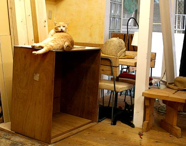 いつもせわしないさすけの腹は、秋仕様。突如ぽこぽこ腹、もこもこ毛。 相変わらずガキぶりっこでかわいい。 菅又は・・・いまだに風楽舎照明機材運搬をしている。いやだなぁ。あげくにハイエ〜スに積み込みは9時の予定が、風楽舎社長は30分遅刻。いつまで付き合わなければいけないんだ、元別姓亭主。 六本木に運搬なので、道はガラ空きなれど遅々として進まぬ道路事情だったらしい。昼帰宅後、明日の仕事用《自動水洗》を受け取り、田崎棚作り、自分の自転車なんたら・・だったらしい。 田崎は出来上がった棚に物を整頓収納。今日も天井近くに2箇所計3段の棚が新設。ありがとう。今回の棚は全部パイン材、以前作った合板のいい加減な仮棚も随時パイン材棚に交換予定。 暑くてだい猫とさすけは・・はぁはぁ。冷房入れた。 昼・ゴ〜ヤチャンプルセット、夜・マラバ〜ルセット、だって夜集金に行ったから、つい匂いに誘われてしまって。 【菅又の一言】・・・《もう壁がない。》 そう、問題はそこ。本箱も鏡もつけられない。困った。 |
