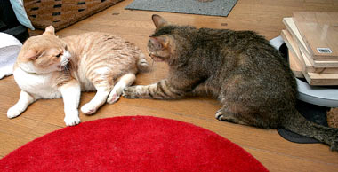 ![]() てつ三昧の昨今、一陣の涼風・・龍う太。 本当かぁ・・夜中大騒ぎはやめろ、近所迷惑。 おまえのせいで猫扉は閉じられる。 相変わらずほっそり龍う太。 |