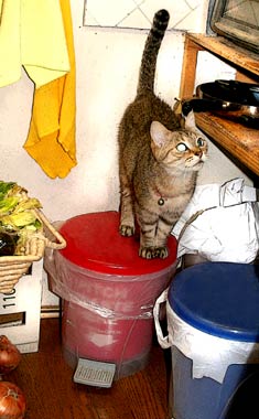 ぶりぶりぶりっこだい猫は、台所のゴミ箱に上って菅又を懐柔中。台所の改造ははたしてするのだろうか。引っ越したときに、取り急ぎ、とりあえずと作ったので、使いにくい。全面改装と思いつつ面倒だ。と、優先順位が低い。 菅又は今週3日目の荻窪。洗濯機の防水バン撤去作業。 午後帰宅して来週の諸々打ち合わせ連絡。 7月に一旦撤去した荻窪の《ベランダ海の家》を再度組み立てる。ビルの防水工事が今年の長雨で1ヶ月遅れた。やっと終了したとの電話有り。どうせ大家にもばれている事だし、今回の組み立てでは、床が完全に濡れないようにもっと屋根部分をのばす計画も浮上。来週予定。 裏の廃屋後の雑草地の《ちょっと小綺麗に計画》もGOサイン。自分で管理できない隣の大家さんはとっても恐縮しているけれど、今後の事を考えて半分は雑草が生えないように処理した方が、田崎も楽。雑草を完全に刈ったら、あれだけ悩みの種だった《蚊》は殆ど消えたし・・うちの困りもの植木を移植するのだ。自宅用駐車場の巨大柑橘植物(種類は未だ不明)とか紫陽花とか椿とか、ベランダの諸々増えすぎた物を。奥の新築中のアパ〜ト前には例の困りものジャスミンを植えてやる、目隠しだ。 午後遅くに、新宿オカダヤとDVDを探し回って三千里。 夜・てつを連れて荻窪獣医。耳下部分に春にひっかき傷がかさぶたになって、しこりになって、また掻くとかさぶたに、という箇所有り。それの検査。腫瘍の可能性も有りと云う事で来週月曜に撤去手術。飛び出しているので撤去しない限り治らない。わぁわぁわぁわぁわぁわぁわぁわぁわぁわぁわぁわぁわぁわぁわぁわぁわぁわぁわぁわぁわぁわぁわぁわぁわぁわぁわぁわぁわぁわぁ。 てつを自宅に置いた後に池袋にDVD受け取り。なかなか長い1日であった。 昼・遅くに新宿の日高屋でラ〜メン、夜・雑穀飯と塩鮭と諸々。 【菅又の一言】・・・《手が短いぞ。》 画像のだい猫の事。自慢らしい。今日は外が恐ろしくうるさかった、工事だらだらだらけ。材木屋は巨大ビルの仕上げ追い込み中。裏の新築も旧出張所跡の新築工事も、うちの前を通って、そこの見える道路に待機している。ディ〜ゼルは臭い、エンジンは止めない。来年は隣のクリ〜ニング屋さんが4階建てビルを1年がかりで。