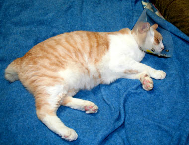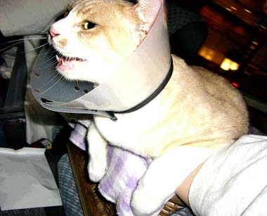 左耳下の腫瘍を切り取った。 病理検査の結果は2週間後。 良性でも悪性でももうこのあとは薬のみ。 エリザベスカラ〜が嫌だといって、迎えに行く直前に大騒ぎをしたらしい。行ったら両手が包帯でぐるぐる巻き。無理くそひっかきまくって両手の爪から血がでろでろしたそうだ。焦る獣医。 帰りの車で勝手に包帯を外していたが、血は止まりもう平気だった。年に数回、高い所から飛び降りて爪が折れたり爪の皮膚が引っ張られて血が出る。それもあって特にてつは毎日田崎にチェックされてる。ゆえに、今回も小さな腫瘍早期発見。 そして、相変わらず帰宅後《飯》。しっこをしてから飯。 去勢とか不妊とか歯石取りとか、色々麻酔を掛けるような治療後は《飯無し》と云われつつ、みんな毎回獣医にけんかを売っている。 今回は何も云われなかった・・・。我々は獣医馴れているから《云わずもがな》か? ともかく喰う。みんなの残りの猫缶を喰いつくし新しく開けて喰いカリカリを喰い、刺身を喰う。 エリザベスカラ〜でどたどたあちこちぶつかって困惑していたが、夜中にはかなり馴れた、ぶつかるときちんと頭を振って抜けている。ただ、顔からかなり出ているので、飯を喰いにくい。 猫ブログでカップ麺のエリザベスカラ〜を見た事がある。具合が良いとあったし、明日試してみよう。 なかなかうまく寝られなくて大変だったが、夜中から菅又にくっついて熟睡。横になって寝れば良いのだよ、てつ。 ステロイド薬を飲んでいるので、治りは遅いらしい。2〜3週間後。店はその後営業だ。てつは看板猫だし、彼抜きで開けようとしても大騒ぎをされる。店大好き。 人間は時間が半端になったので、多摩ニュウ〜タウンのコストコとカインズホ〜ムに裏庭用素材購入に。今週はてつのために子守予定田崎、うそ、どっちにしろひき『こもり』。 昼・帰り道の生活クラヴで色々パン買い食い、夜・大騒ぎ後遅くに雑穀飯とイナダ刺身と生姜茄子。 【菅又の一言】・・・《 》てつのために寝ている。 |