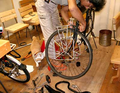 洗濯部屋の新しく棚を作っている現場は大盛況。