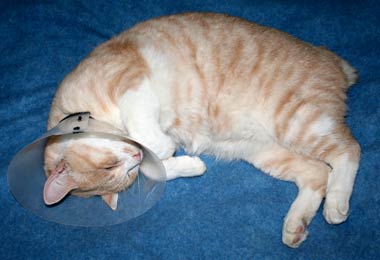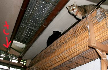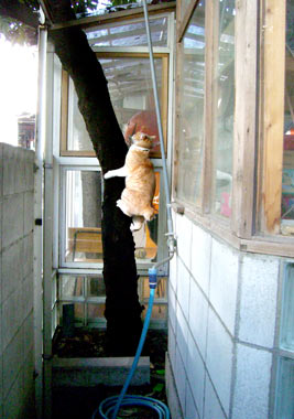 新しい透明てつカラ〜。ハンズで購入してきた材料で手作り。スナップはコジマで購入した物の予備使用、ポンチで丸穴をぼこぼこ開けて風抜け。 首周りはタオル。開きを大きくしたので、顔には触らず、具合は良いみたい。菅又にカットして貰い、微調整と制作は田崎。 ばっちり飯も喰いやすい。相変わらず狭いところを通るときはごっごっごごごご。 菅又は中庭作業、雨樋改造とか雨水排水溝設置、築山補修。 今日あちこちから外仕事用の品物到着の連絡有り、今週末はやっと外作業。野外のセンサ〜ライト取り付けなどはどうなることか。 田崎は裁縫。猫たちはソファ隣で入れ替わり立ち替わり一緒でうれしい。 昼・叉焼定食作った田崎、夜・ステ〜キセット。 【菅又の一言】・・・《赤猫三つ巴。》 よそ猫が大きい駐車場に来ていて、それを見たこちゃが喚く。つい、てつも見に行く、騒ぎを聞きつけたさすけがこちゃに暴力。びびったこちゃはてつに意地悪。 というのを昨夜から先ほどまで数度。馬鹿。 |