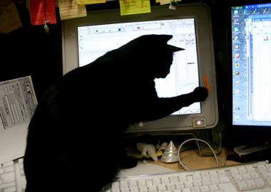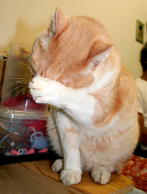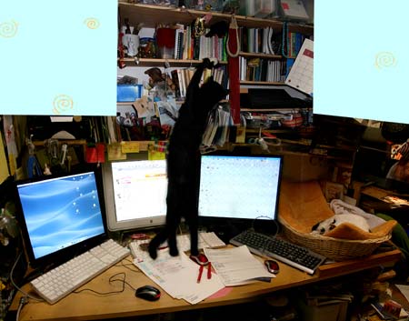顔を洗うてつ。長く長く一生懸命洗う。 9/25からもう3週間近く。時々濡れタオルで顔や身体は拭いてやっていたが。 カラ〜も明日取れるかもしれない。 菅又は海の家再設置2日目、完了。 田崎も欲しい。 今日のてつはとっても静か。昨日で懲りたか。 田崎はMacミニ作業。なんと、《Classic/os9》って後から自分で入れるのね・・。Macミニのインスト〜ルCDだかDVDだかが見つからなくて気が狂うかと思ったぜ。G4が3台有るのでどれがどれのやら。違う、1台分見つからない。 菅又がMacミニ待避箱に隠していたので全ソフトBOXに入っていなかったのが原因。 何故にPhotoshop6が入らないのだ。うむむ。不審だ、他のOS9用ソフトは入ったのに。 OSXの10.4.8だ・・・。現Macの裏(デュアルなのだ)はOSX10.3.8?かそこいら。この違いで各ソフトもちょっとバ〜ジョンが違ってくる。 もうOSXでもいいや、気分なのだが、文字が見にくい。ヒラノギ?ヒラギノ?ぬるぬるしている。カチッとして欲しい。ガリ版刷り風の。 しかしOS9のInternet ExplorerとWindowsのInternet Explorer、OSXのサファリと3台起こしをして作業していると目がちかちかして馬鹿になる。 昼・菅又は田崎の作った弁当/田崎卵掛け飯、夜・残り物すべて・・・総菜10種類で気が狂いそうだった。多いの嫌。完全に菅又の思想に染まった。 【菅又の一言】・・・《こちゃにずりずりされたら目が異様に痒い。》 だから、ずっと外にいて毛に溶剤臭がついているからだよ。毎晩2人ともクラリチン。