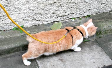 ![]() あんまりうるさいので散歩。 カラ〜がついているので胴輪を通しにくい。 改造が必要。 時々猫ブログで見かける、完全チョッキ状の方がしっかりしていて良いのだが。 店では見かけない、それも作るのか・・。 |