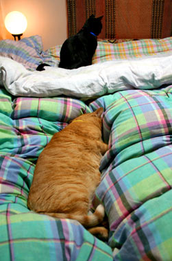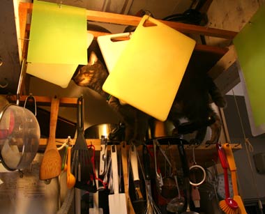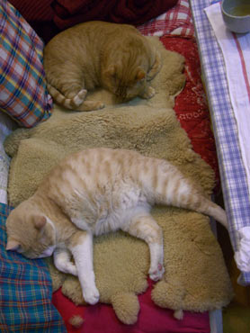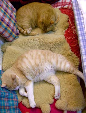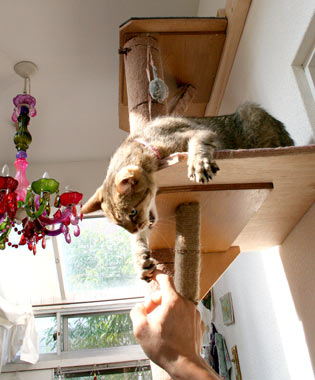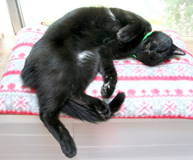 龍う太は暑いときは西の窓、寒いと洗濯部屋の棚の中。画像をいじらないと真っ黒でどこが口やら。 脇毛と陰毛が真っ白なので腹はすぐわかる。 5時就寝なれど9時起床田崎。が、猫たちの構って光線に負けてみんなで庭だらだら。 高島屋に10時に行って《北海道・開拓烏賊おかき》が欲しかったが、さりげなく断念。腹デブだし。 午後小金井の友人宅に野菜を貰いに外出、高島屋の前を通ったが駐車場渋滞していた。ので、やはり再度断念。 小金井で猫登り棒の打ち合わせ。現在ある小さな爪研ぎ棒(菅又製作)は雄猫が独占して意地悪。天井までの長い物を作らんと構想中。 帰路新宿ヨドバシでデジカメ物色とGAME購入。 といった地味祝日で楽勝〜。 毎日暖かい。もっと猫共庭に行け。 昼・・・・・、夜・スパゲチミ〜トソ〜スとキャベツ。 【菅又の一言】・・・《外で遊べ外で。》 |