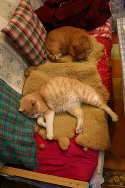 秋枯れた雰囲気。実は単に《ちゅうちゅう持ってこい遊び》の休憩中。 菅又はTVコ〜ド引き回し作業、完成。 田崎は昼から会費制宴会飯作り。 常連さんというか、お友達と宴会が恒例化中。 鯖ママが店営業のためにリハビリなどと云うたが、実際に本当だったわ。先週はちょっと立ち仕事が疲れたりうんざりしたが、今週はまったく平気。やはりこういった強引な負荷が必要。楽しいじゃないの。 合計7人という、田崎にしては多勢なれど大丈夫だった。 午後遅くに電話あり。『yahooと提携しているレストランガイドだが、オタクは飯ジャンルは何?』『内装屋が時々開けるのでジャンルはない』『集客を考えている?』『いない。』 問題はこの後。『あ〜そうですか、よかったよかった、じゃ〜さようなら。』と云って電話は唐突に切れた。 田崎は怒った。あまりに失礼。怒りの逆襲電話をしようと思ったが、相手先がわからない。誰か心当たりがあったら教えて欲しい。 怒っていたらケェキが焦げた。 18時から24時まで飲み食い騒ぎまくった。 客人持参の《エンジェルカ〜ド》を引いて遊んでいたら、田崎は《ユ〜モア》・・・・・。冗談の通じない田崎ですか・・。 菅又は《成長》・・・大受けだった。自分の好きなことをして世界のためになる。自転車改造が世界のためになる成長著しい菅又? といって又遅い儂。 昼・まかない飯(クラムチャウダ)、夜・宴会飯。自慢は明日じゃ、もう眠いじゃ。 【菅又の一言】・・・《こちゃは寝る。》 更新時になると隔離部屋の外でこちゃがわぁわぁ云う。BEDに連れて行って寝かせると・・寝る。何故に赤猫は・・。勝手に寝ろ。 mixiの赤猫コミュニティで《赤猫はでかい?》というトピックが立っていて・・・でかいんですか、でかいんですね・・と。まだでかくなるのだろうか。漬け物石のように重い。抱くと泣きそう。でもしっこをやめてくれたら倍になってもいいです。 |