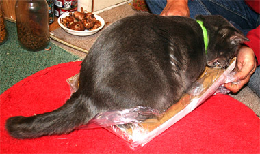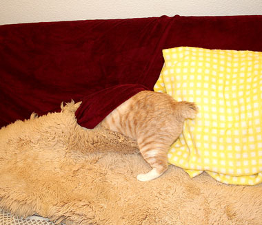 龍う太は田崎の方眼型紙にくるまって遊ぶ。 |