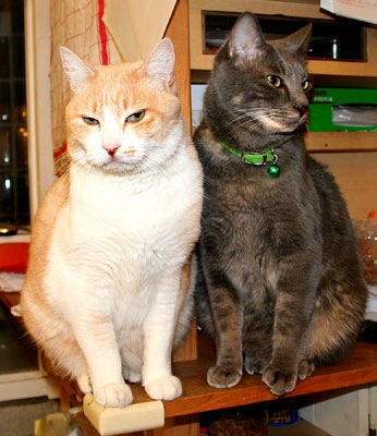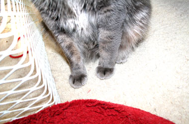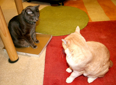 同じ猫同士とは思えない足の違い甚だしく。だい猫とさすけ。 |