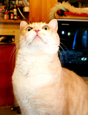 ![]() ガスストーヴにくっついている。 耳が真っ赤。 嫌。 |