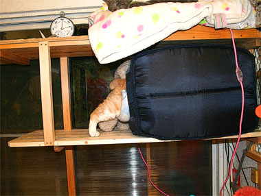 ![]() 熟睡ぶんたろ〜を襲って追い出すさすけ。 珍しく声を出して小さく喚いたぶんたろ〜。 ・・・・・・。 勿論菅又に《悪ガキ》と云われる。 |