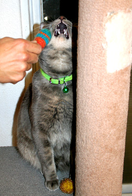 ![]() 龍う太はお利口。 黄色いモールボールで1人遊び。 くわえて放って大騒ぎ楽しそう。 登り棒で・・器用にくるくる放りながら上がっていった。 |