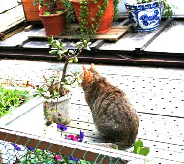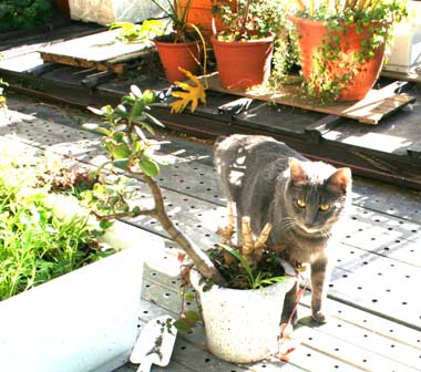 今日は日当たりが良く暖かかったので、猫は庭で大騒ぎ。田崎が外にいれば。