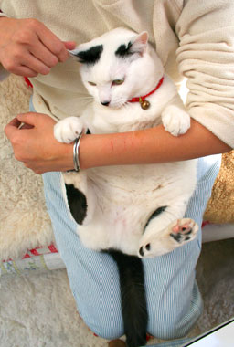 田崎膝に抱いたやいちの爪を菅又が切った。