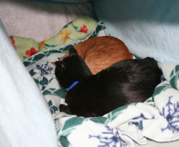 あちこちに匂い付けころころ、だい猫。毎日いっぱい食べて日光浴をして元気元気にご機嫌。 こちゃは菅又が3階に寝るようになってからますます甘ったれ。懐にも入っていくらしい。今夜はぶんたろ〜も一緒に3階だぁ。 田崎2階BEDは・・・辛い。何故3匹も乗っているのかわからない。何故何故? さすけは基本は懐だが、暑くなると上に。やっちとてつが。最初に足の間にはまりこみ、2匹目は膝あたり。非常に辛い。 さすけは懐に入りたい時は自分で潜り込むようになった。入れない時は田崎鼻先に自分の鼻を突けてふんふんと。夢うつつでも自動的に羽毛を持ち上げる田崎。 てつは面白い。毎晩23時半から24時にわぁわぁ大騒ぎ。あー薬かぁと菅又に云われて飲まされる。自己申告。菅又にマゾと毎晩云われているところ。 遅起きをしてあちこち片付けや春仕様に改造。 昼・インスタントカレェ(田崎が安っぽいカレェを食べたいと云ったら。でも王様のカレェとか外飯で安っぽいカレェが喰いたい)、夜・雑穀飯とハンバーグセット。 【菅又の一言】・・・《春だ元気だ色呆けだ。》 てつがうるさくて。てつが他の猫の首筋を囓って。