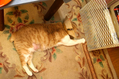 ![]() 今日の親爺てつ。 さんざん騒いで満足したらソファの下に無理糞入って熟睡。 でもこの下や猫扉を無理糞通るのでエリザベスカラーはめきょめきょ。菅又が補修した。。。 |