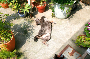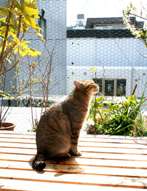 1階中庭の研ぎ出し流しでなにやら・・さすけ。この右上に排水溝があるのだが、よくそこに腕を突っ込んでいる、虫でもいるのかも。 毎日日も差すのでころころずりずり雑巾掛けも。 田崎はてつとさすけを抱くとごほごほ。 菅又はマラバール補修の下見、中野島忠に自転車で昨日の外仕事用網戸戸車買い。でも恐るべし島忠で、結局近日中に与野ドイトに行くらしい。 田崎は早起き、片付け掃除洗濯こちゃ構い植物いじり。 大変なのだ、猫の母は。どこに行くにも大軍団、猫大移動。それはいい。でも重い荷物やかさばる荷物を持っている足下を犬のように1歩先をちょろちょろ歩く。お互いにとても危険で困る。 2階でどたばた作業をしていると3階でこちゃが呼ぶ。 しっこ掃除より楽です、行きます行きますいくらでも呼ばれたら行きます。 2階のさすけがむしってしまう植物を3階に移植。今年は蘭があまり咲かないと思う。出てくる先を全部むしっている。毎日散乱している新芽・・。 昼・マラバール(打ち合わせ帰りにしこたまテイクアウト菅又)、夜・マラバールはまだまだ続く。 【菅又の一言】・・・《もっとも効果的に邪魔をするのが、やっちの生きがい。》 |