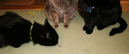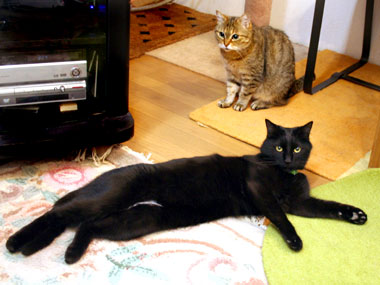 てつはものすごくうるさい。こちゃが2階にいなくなったせいか、むちゃくちゃうるさいうるさい。 やっちと2匹勝手放題に我が儘。 しっこ騒動がなくなった《引く》・・『3階のこちゃをいっぱい構う+2階の馬鹿2匹がうるさい』・・で、それは勿論しっこ掛けがない方が絶対に良いが。 あああああうるさい面倒くさい。朝から晩までひたすら喚くてつ、意地悪ときーきー喚くやっち。 てつの喚きは『外から帰った』『外は寒い』『美味しいカリカリくれ』『3階に(1階に)行く』『帰ってきた』『触れ叩け』。その合間にやっちや龍う太にさかって追いかけ囓る。 人間は2人とも昨日の檜鉋屑に負けて頭痛肩こり鼻汁。昼寝していた。逃避とも云う。 昼・・パンとクラムチャウダだらだら、夜・作りたて叉焼と自家製水菜で叉焼丼。 【菅又の一言】・・・《てつは迷惑猫のTOPに躍り出た。》 |