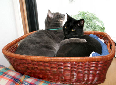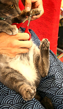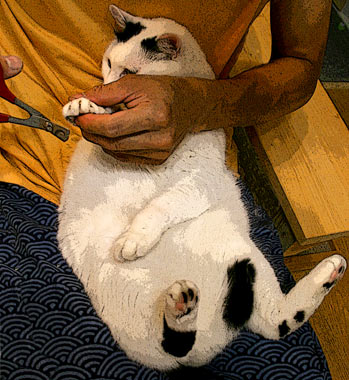 何があっても抱っこ猿。何も出来ない。 ソファに座ると、てつを叩いているかぶんたろ〜を触っているか、猿抱っこ。 小さくてかわいい。 その割には重いし落ちるし・・・一生懸命抱いていないといかn。ちょっとおかしい。 田崎は短パンタンクトップ完全夏仕様。窓全開の水シャワ。1年の半分は水シャワを浴びている。 久しぶりの・やっとのカイロプラクティック・気功。 肩の痛みは。 首が細いので弱い、血管も細い、血管が広がっても縮んでも凝って痛む。 今回は目の疲れと冷房負けとの事。 冷房場所では首に何かを巻くように指示有り。 そうなのだ、冷やすと痛むので右肩首は水シャワ中止、冷房場所では右肩を押さえていた。狙いは正しかったが、つめは甘かった。要完全防備。別名婆ぁかぁ? しかし今年の冷房は例年よりもまた一段と冷えていないか。道行く人も長袖厚物の人が多い。おかしい。 新宿ヨドバシで部材買い。 午後から片付けと作り物と庭仕事、蚊が多くて参った。 昼・車中で四谷PAUL買い食い、夜・うまい菅又味噌ラーメン。 (菅又曰く、頭が小さいので脳の緩衝剤が少なく振動にも弱い。血管が広がる・低気圧、血管が縮む・寒い・頭に血が行かないので痛む・・等等)・・・。何度聞いても血圧の話が覚えられない馬鹿な田崎である。 ---------------------- 一昨日、菅又が3階に上がっていくと、裏のビルの3階通路から、こちゃに、『とらちゃn』と呼びかけている声が聞こえたそうな。 最近こちゃは時々『とらちゃn』と揶揄される。嘘、かわいいねと呼ばれる。・・・・・・。 ---------------------- キーボードとマウスを取っ替え引っ替えしたせいで固まる固まるうんざり固まる更新時。元来のキーボードに戻して力一杯打っているところ。 |