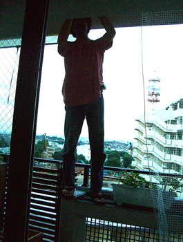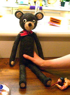 9階マンションの植木棚に上がって網を取り付ける菅又・・・みんなのきゃーきゃー云う声にも負けず上がる・・・。怖い。嫌。 クライアントさんの作ったフェルトくま・・・大きくてかわいい・・・。大きさとかわいさにショック。 匍匐するネイティヴアメリカンもいた。 |