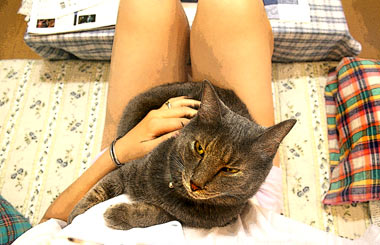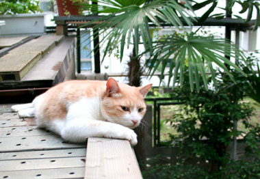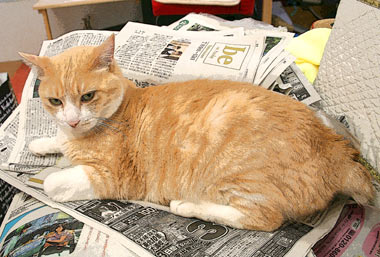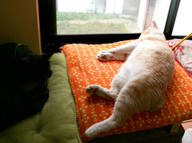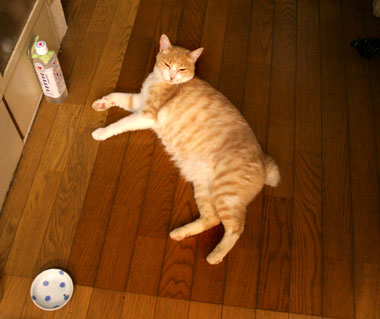 黄昏れているてつ。嘘、涼んでいる。 最近は呆け老人と呼ばれている。 菅又は近所外壁コーキングをひたすら。窓周りは狭くて泣くらしい。 まーだまだ、らしい。いったいいつまでかかるんだ? 田崎は。 夕方本屋。 今日はちょっと失敗した。だい猫はあまりはぁはぁしていないので、下階は冷房無しだったが、やっちは耳が真っ赤で夜までぐったりしていた。飯はきちんとしっかり他の猫の分まで横取っていたが。というか、涼しいところで寝ろよ、風の吹かないソファでだらだらしていたから暑いんだよ、おまえだけ。 と、田崎も失敗。最近留守がちで寂しかったこちゃが騒ぐので3階にいたのだが、喉痛声がらがら頭痛。今週はずっと声がれしていたが、今日原因判明。結構近くの(いつの間にか急にいなくなったディネットの隣)巨大ビルが解体中。解体埃負けしていた。猫共と寝室に籠もっていれば良かった。 昼・菅又の作った冷し中華、夜・本屋帰りにマラバール前を通った菅又が・・マラバールいつものテイクアウト。 |
