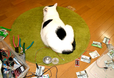 職人菅又の立った隙に場所取りやっち。菅又は床にあぐらをかいて作業。 ハンダ付け作業をするには、机の上は猫が飛んできて危険。 と、机にはてつが住む。 菅又は井荻マンションにエレクター3個組み立て設置仕事。 午後中程に帰宅、注文していた菅又玩具が届いたと云う電話があったので、渋谷ハンズに外出。ファインモールドの・・スターウォーズの・・。 渋谷は臭くてうるさくて目が腐るー、ハンズは寒いー。と2人でぶつぶつ、非文明人。 井荻ではものすごい土砂降り、中野からこちらはただの曇りだった、との事。 オリンピックなどと訳のわからん事を云っている場合ではないだろぅ、気候変動ー。 昼・渋谷ハンズ裏向かいのインド料理屋でナンとシシカヴァヴ買い食い(巻いていつものインディアンバーガー状にして・美味かった)、夜・昨日の昼と同じ/太めのそうめんセット。 |