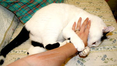 ![]() こちゃ部屋の爪研ぎを取り替えようとソファの膝の上でビニール袋を剥がしていたら。 すかさずさすけ。 重い危険。 どうしてこんなに手が先細りなのだろう。 とてもちっちゃい。 かわいい。 |