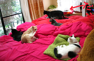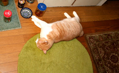 どこからかファスナーを持ってきて遊ぶ。くわえて走り回っている。 さすけかわいい。 昨夜就寝が遅かった又や堂。 この1週間強、どたばた。 老人なので短気。 でも先ほど連絡あり、杉並騒動は一応収束。完全行動終了はまだだ。 涼しいので猫達は静か。例によって龍う太以外。。。。 本当に龍う太はいつでもどこでも必ず元気。人間が動くと必ずどこからか出現してねばねば。 ありがたい。。。 さて、ひたすら製作作業だ、又や堂。 昼・ウェンディーズ買い食い・・・・・、夜・鰹叩きと雑穀飯と膨大な和みセット。 プロジェクトランウェイ観ながら山盛りだだ茶豆を今・・・。 今夜はまだまだがんばる。 |