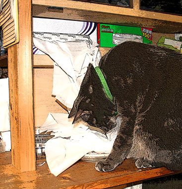 赤猫・・・。毎晩やめてくださいよぉ、台所のティシュBOXほじるのぉー。 今日は帰宅が遅くわさわさしていたら、猫缶の残っている皿をいらないいらないと埋めて・・・ティシュも掛けて。でも最後にほじくり出して食べていた。 菅又はマラバール椅子継続中。 そういえば隣は13日に引っ越し。その後、うちの境界線塀を作り直す。ほら例の田崎激怒した《建築屋が壊すのを前提で話を持ってきたという馬鹿云ってんじゃないよ》の。 たぶんモルタル打ちっ放しの高い塀になる。ブロック塀だと条例で低いのしか出来ないそうな。 隙間から向こうの道路騒音が漏れてくるのが嫌なので、いっそ高くていいや。などと田崎。実はモルタルにテラコッタ破片を鉄平石のように飾らんと欲したのだが、本日ジョイフル本田で調査の結果・・・・あまりに面倒っぽい・・・・・。 一瞬ため息。 そうそう坂の上のラドンサウナビルが解体か? ビルは暗闇。最近夜中に静かになっていたのはこのせいだ。 というか、やはりくそうるさかったのはおまえかぁ。糞馬鹿。 昼・千葉ジョイフル付近で寿司買い食い車中食・・・、夜・今からブロコリといくら飯予定。 |