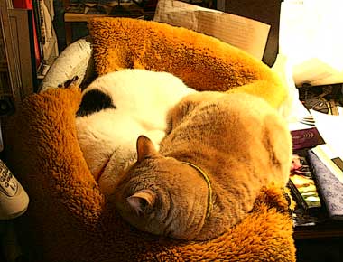 さすけはバナナが欲しいらしい。短いが太い腹・・というか胸板。 小さな手先足先。 猿は何者? 菅又は何やら細かい作り物。 耳の痛い田崎は遅起き。毎晩毎朝猫達うるさい。さすけは懐に出たり入ったり。最近は一生懸命自分で潜り込もうとする。失敗してもーもーと鳴くので必ず目が覚める儂。 龍う太は枕元の猫偽ちぐらに潜り込もうとどさどさ大騒ぎ。 時々てつがわぁわぁ大喚きしながら階段を上がってくる。呼ぶとぶつぶつ大ぶつぶつ喉を鳴らしてもみもみして・・満足して降りていく。何だろう。