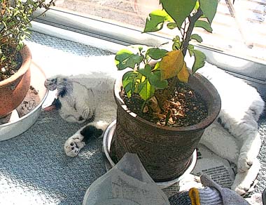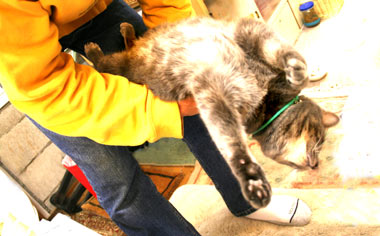 毎日日光浴の正しい猫はだい。昨夜から絶不調田崎。 解体埃負けか新築のペンキ負けか。今日は隣にユンボも。ユンボのディーゼル負けも。 喫茶店の紫煙にも完敗。 朝あまりの不具合に下井草にmacソフトを教えて貰いに行く予定が。 時間遅れで何とか復活、新しいソフト楽しい。 もう1人生徒さんがいるが先抜けして、夕方阿佐ヶ谷で北海道から買い付けに来ている友人と会う。新宿ヨドバシ、GEO。もう帰路はへろへろざんす。 帰宅したらガスストーヴのそばに魚の骨滓のような不審な物が。触ってまじまじ見た田崎は悲しい。 庭に来るなとあれほど云うているのに、何やら小動物が木の実を。 ・・・・・・・・・・・・・・・・・・・・・・・・・・・・・・・・・。 もう家中歩けない。しばらくは猫達を信用出来ない。いや。 嫌。 そして、頭痛と。熱が38度5分どす。 喉からの不調が。 埃に完敗田崎。たまのゆっくり外出も猫に成敗された、完敗。 もう駄目どす。 昼・四谷PAULサンドイッチ(兼差し入れ)、夜・粥とか・・田崎は完敗。 【菅又の一言】・・・《並んでまで買わない。》 先生友人宅でPS2ソフトが。面白そう時間掛かりそうしばらく休もう・・と購入せんとヨドバシやらに行くが、WILL発売とかでレジは大行列、完敗又や堂。 |