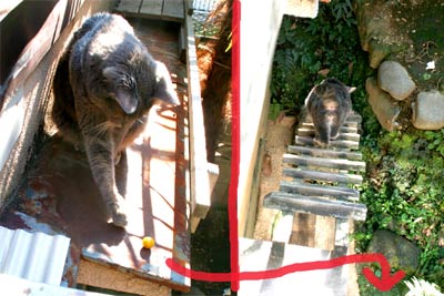 ![]() どこからか隠してあったトマトを。 中庭に落として、自分で取りに行く。 猫階段を下りる後ろ姿は日本猿のケツ。 |