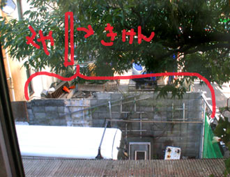 | 隣 | 隣の解体・・。境界線はうちのモルタル塀の少し外。隣の土台モルタルとほぼ接触、これが問題。 ハイエース駐車場のブロック塀を壊すと云ってきた。ユンボでがんがん地響きさせて解体中なので、ぐらぐっら。どうせ危険なんだから壊す・・と云ってくる。塀がなくなったら埃と臭いが来るので田崎拒否。 建築屋とオーナーに苦情田崎。 大久保の知り合いの設計屋さんに相談。 あまりの手落ち後手後手に驚く設計事務所。 埃とディーゼル臭が出る期間は塀壊しは無し。(屁い壊しって何ですかATOK?)とりあえず単管を両面から抱かせ保持。そのうち向こうに囲いを作り、ブロック塀撤去、後日田崎ブロック塀の作り替え。 実はこの騒ぎになるのは知っていた田崎。いつ何時誰がどのように云ってくるかと思いきや。馬鹿共である。菅又君、中里さんの案は儂と同じだろ。解体前にわかっていた事だろ。ふん。 そして・・・塀保護を文書にして出せと云うたら、夜持参。それまでユンボががんがん作業しっぱなし。 |
