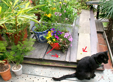 ![]() 庭に黄色モールボールがむちゃくちゃあちこち散乱。 ここにも3個固まってある。 雨が降る前に捜して拾って歩く。 ------------ 庭はごわぁーっと。 今日の花をupしたいが何十種もある・・。 いつのまに侮れない。 |
