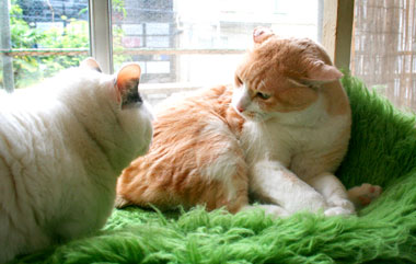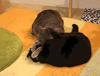 ![]() 遅く帰宅したら。 猫飯の後外に行かずに人のそばで遊ぶ。 無言で取っ組み合っていた龍う太とさすけ。 羽交い締めにされて辛嬉しいさすけ。 |