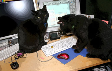 暑いとか寒いとか面倒/我が儘なだい猫。昨夜どたばたモニタを設置。 さすがに横長32インチはでかくて感激。 ただ、19インチと同じ文字サイズにすると・・小さくて見にくい。macOSXのフォントは見にくい。モニタが大きくなってもあまり変わりない。早くOS9を完全に諦めて移行だ、比べる物が無くなれば諦めもつく。 昔、映画/シガニー・ウィーバーの《コピーキャット》で、居間にモニタを何台も並べて各コンピュータで各作業をしているのを観て・・・あまりの壮観さに笑った。これって好き、いつかそのうち儂もと思った。 いつの間にか時代が追いつき、自分が追いつき、嬉しい。 最近は左でiTunesをBOSEで、中で更新、右でSims2。 って、全然仕事じゃ無い、などと云ってはいけない。難しい作業は1カ所でやればいいんだ。 昼前店に訪問客、違った、てつに訪問客、叩いて貰った。 千葉ジョイフル本田に井荻アパート改装部材買い、ついでに幕張、IKEA。道はガラ空き、でも千葉は遠い、帰宅は21時過ぎ。 昼・千葉ニュータウンヤオコー買い食い、夜・いつものヤオコー味噌ラーメン。 |