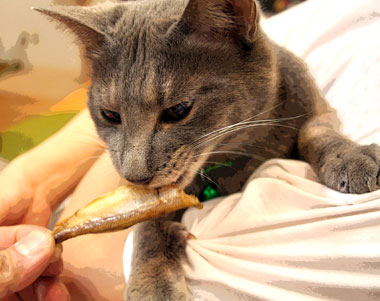 ![]() 食卓を覗き込み鶏肉が欲しいと云うたが、もうなくなっちまった。 諦めさせよとししゃもを見せたら。 あっという間に頭を喰った。 でも卵の入った腹はいらぬと、この後どこかに行ってしまった。 残りは人が喰った。 |