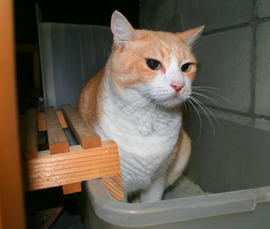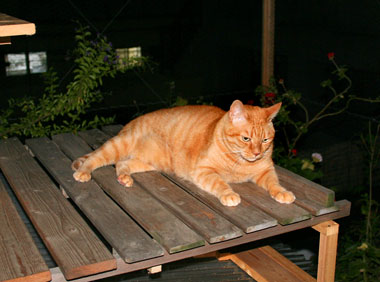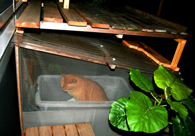 ![]() 3階の野外こちゃ専用猫便所。 上のすのこが最近の流行り場所、とても涼しいのだ。 |